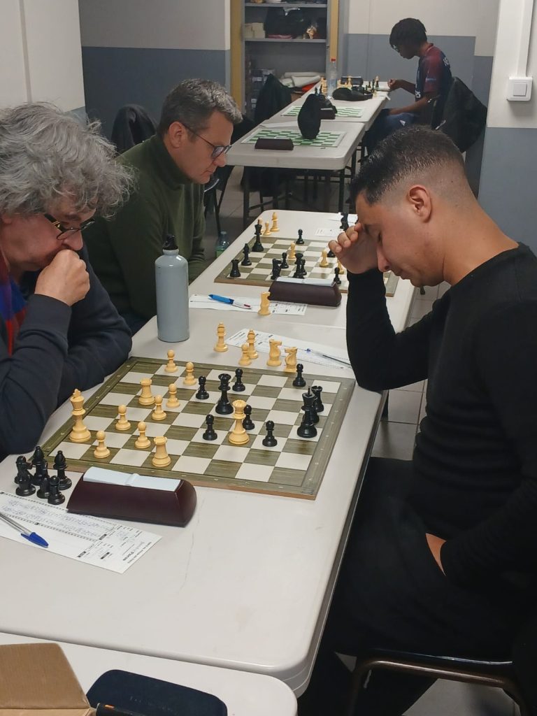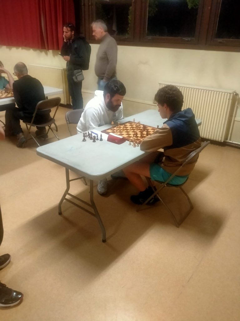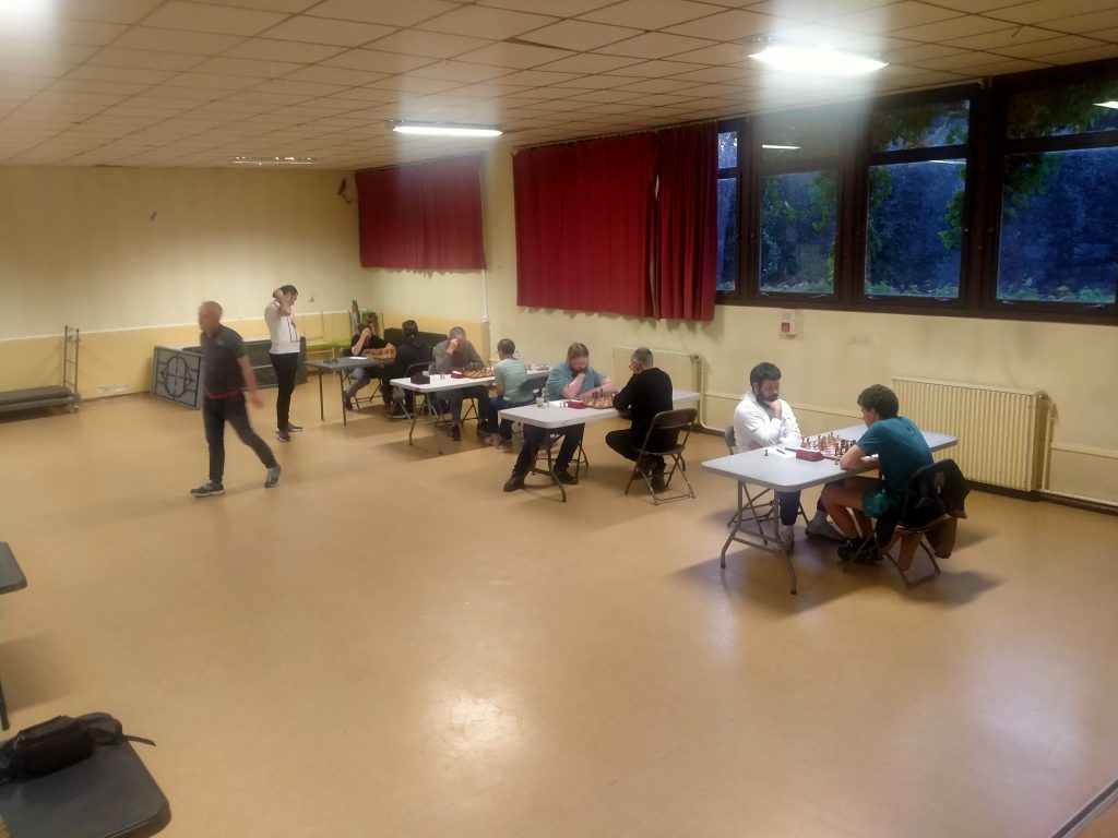 Quentin gagne rapidement contre un jeune assez fort, Thomas annule contre un joueur à 100 points élo de plus, malheureusement Maxime et Bessem se battent bien mais finissent par perdre.