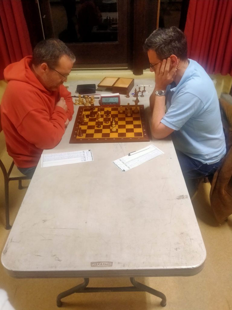 Hugo est mal rapidement, Pascal se trompe d’ordre de coups et se retrouve foutu au bout de 8 coups, Le Prèz se fait grignoter à l’aile dame et Ali est beaucoup mieux.