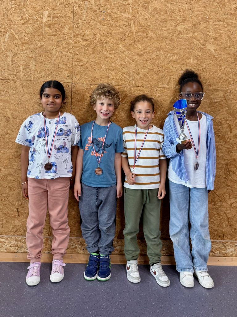 U8 : Shamat fait 2/7 pour son 1er tournoi ! c’est dur ! Madi fait 4/7 en faisant 2 pats d’affilés aux 2 dernières rondes !! Il aurait pu se qualifier s’il savait mater avec 15 pièces de plus ! Victor fait 5/7 ! Il était au bord de se qualifier pour le championnat d’Île-de-France ! Il faudra espérer qu’il y ait des désistements.