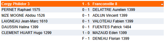 Le résultat du match ne laisse pas place à un grand suspens car nos 6 joueurs à 1700 vont jouer contre une équipe de 6 joueurs non classés, on se doute qu’ils vont gagner mais sur quel score ?