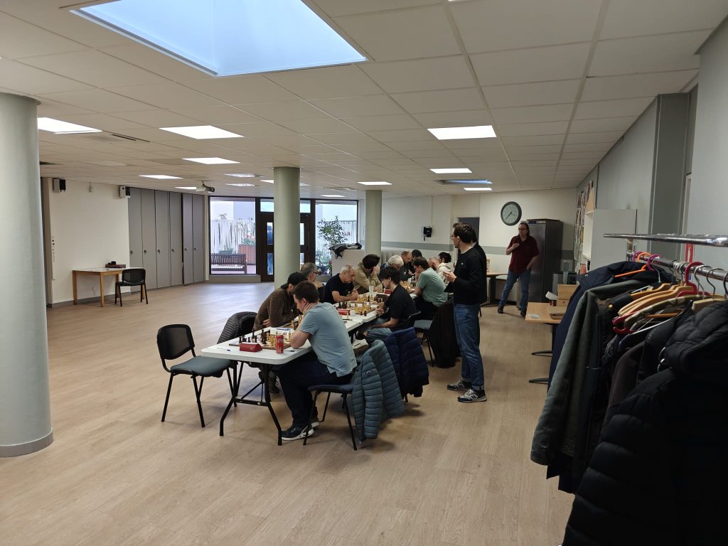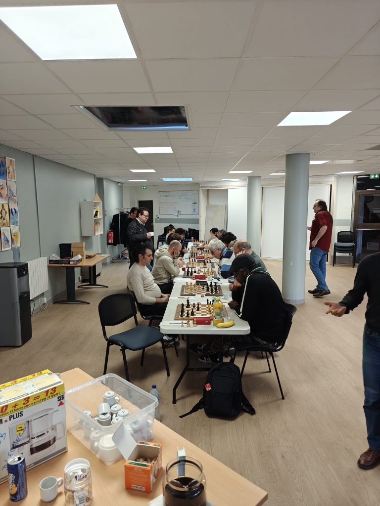 Sébastien a eu une super position avec un magnifique Cavalier en c6 dans le camp adverse ! Son adversaire ne se laisse pas faire et casse le centre. Sébastien s’embrouille et se retrouve moins bien. En Zeitnot réciproque, son adversaire gaffe et perd une pièce en 1 coup ! Malheureusement c’est quand même perdant pour Sébastien… 1-2