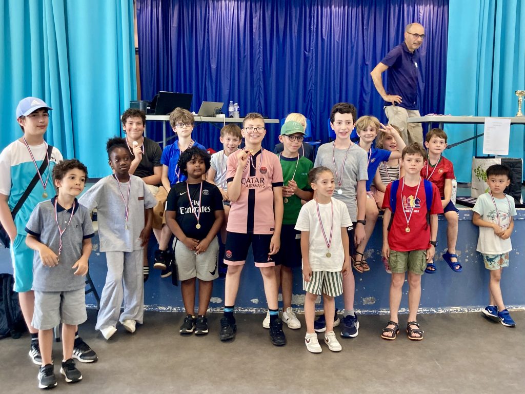 Madi, notre schtroumpf préféré, souffre dans le tournoi car c’est un tournoi avec beaucoup de joueurs adultes expérimentés ! Il finit quand même avec 1/7 et réalise une performance supérieure à son élo ! 😎