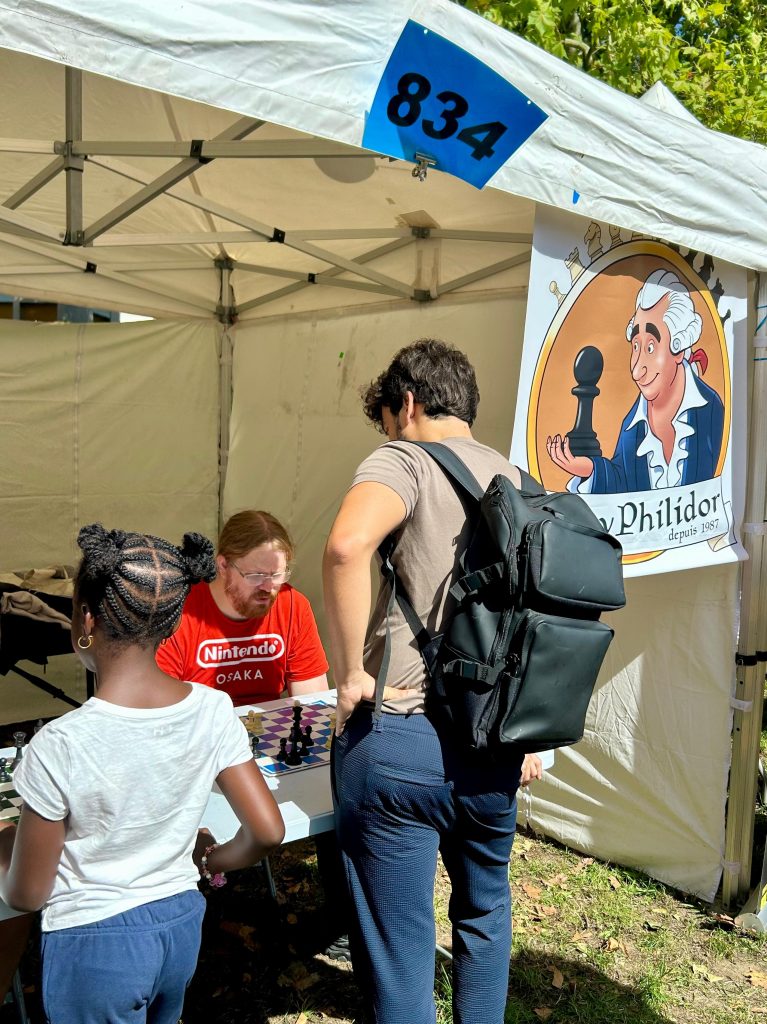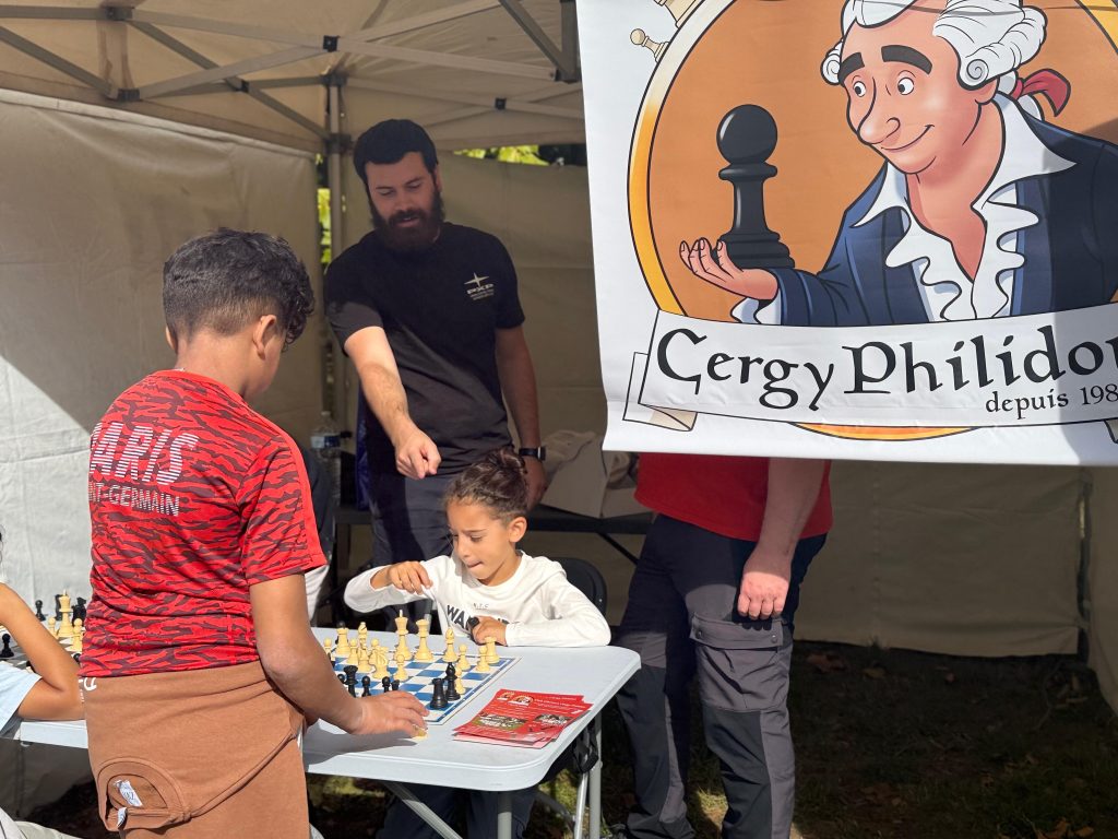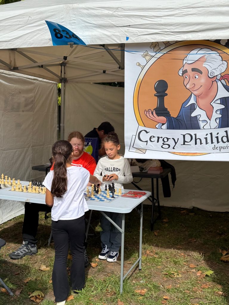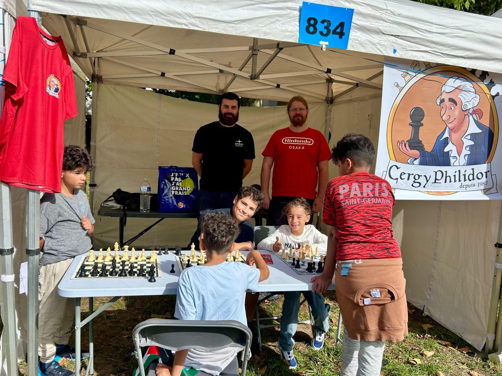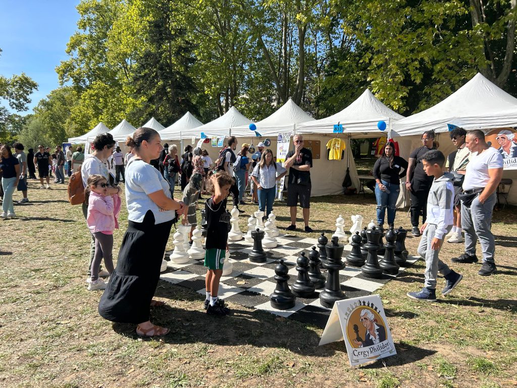 Samedi 6 septembre le Club d’échecs Cergy Philidor était présent à la journée des associations de la ville de Cergy. Il y avait des dizaines et des dizaines de personnes qui ont profité de cette belle journée ensoleillée pour venir à notre stand demander des renseignements (horaires, tarifs, cours) sur notre association.